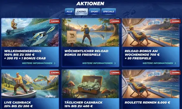 | Wöchentlicher Reload-Bonus | 50 Freispiele auf die erste Einzahlung | Montag bis Donnerstag |